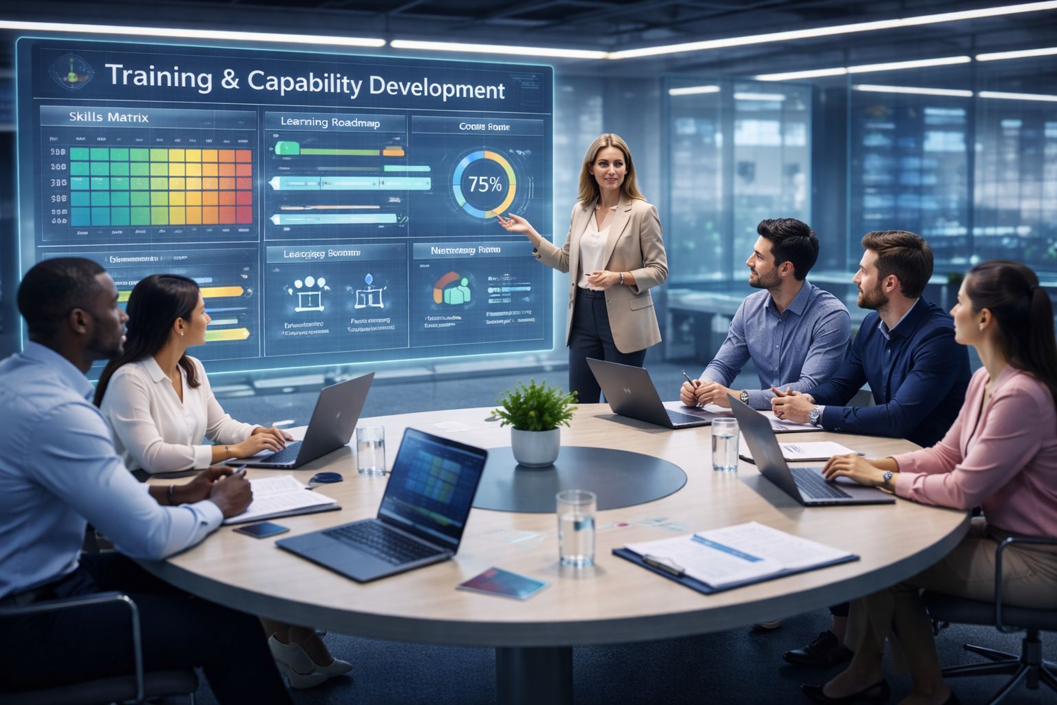Our capability development services focus on transforming knowledge into practical proficiency, enabling individuals and teams to perform with confidence and consistency. We deliver structured, outcome-driven learning programs that combine expert guidance with hands-on application, ensuring skills are directly aligned with operational and organizational needs.By bridging the gap between theory and practice, we help build adaptable, high-performing workforces equipped to meet current challenges and future demands, delivering lasting value and measurable impact.